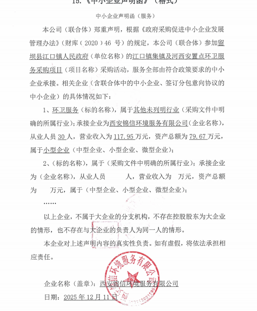******人民政府江口镇集镇及河西安置点环卫服务采购项目中标(成交)明细.pdf ******人民政府江口镇集镇及河西安置点环卫服务 磋商.doc 中小企业声明函.png