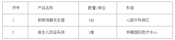 ******医院全自动无菌医用冰沙机等设备比选公告》。因其中的射频消融发生器、新生儿防盗系统在报名截止日期之后报名供应商不满足三家,现进行二次公告,欢迎各供应商报名参加。